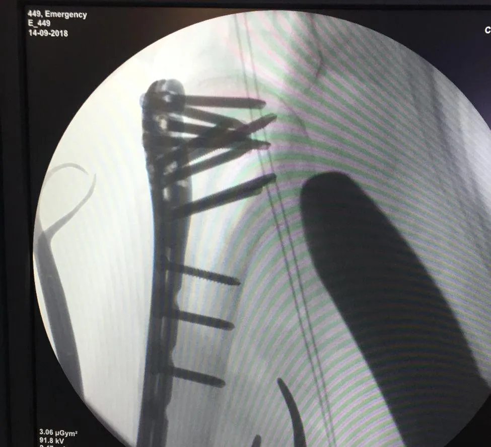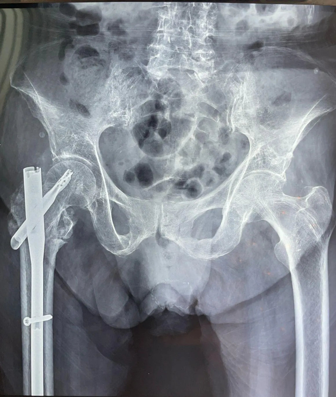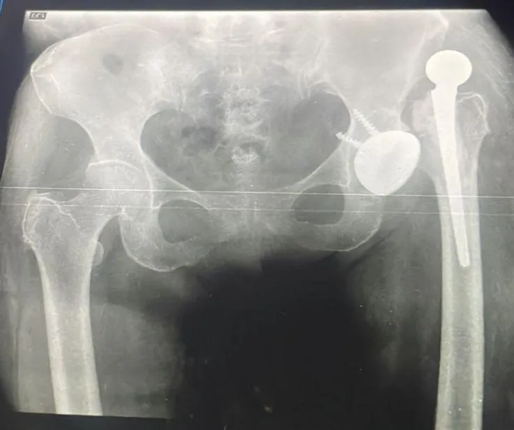- Fractura antigua de cadera manejada con prótesis doble movilidad